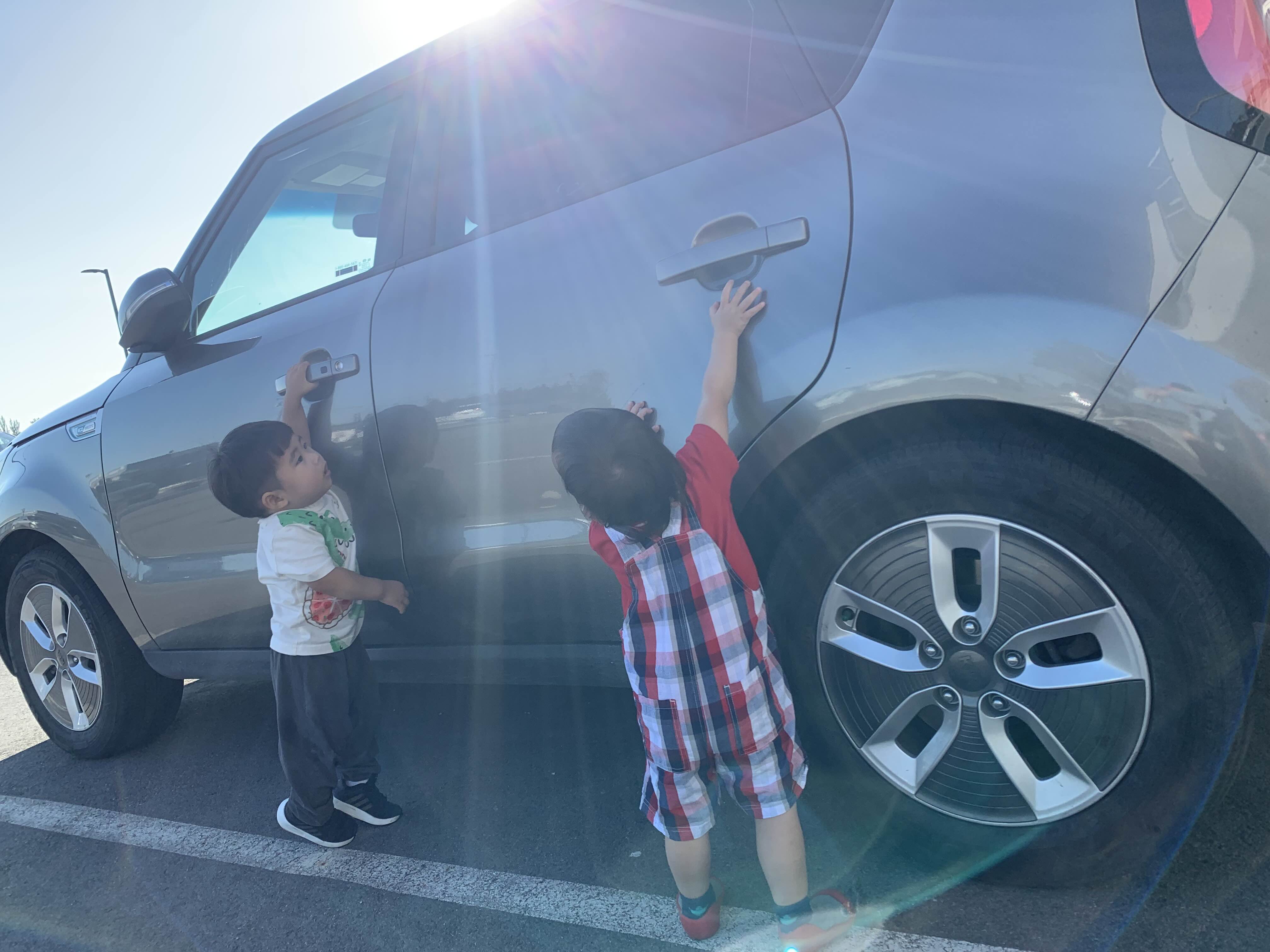 주차된 아빠 차에서 노는 건 너무 신이 나서 내릴 때마다 아빠랑 전쟁.. 그래도 너무 즐거워해서 못하게 할 수도 없고 말이야...