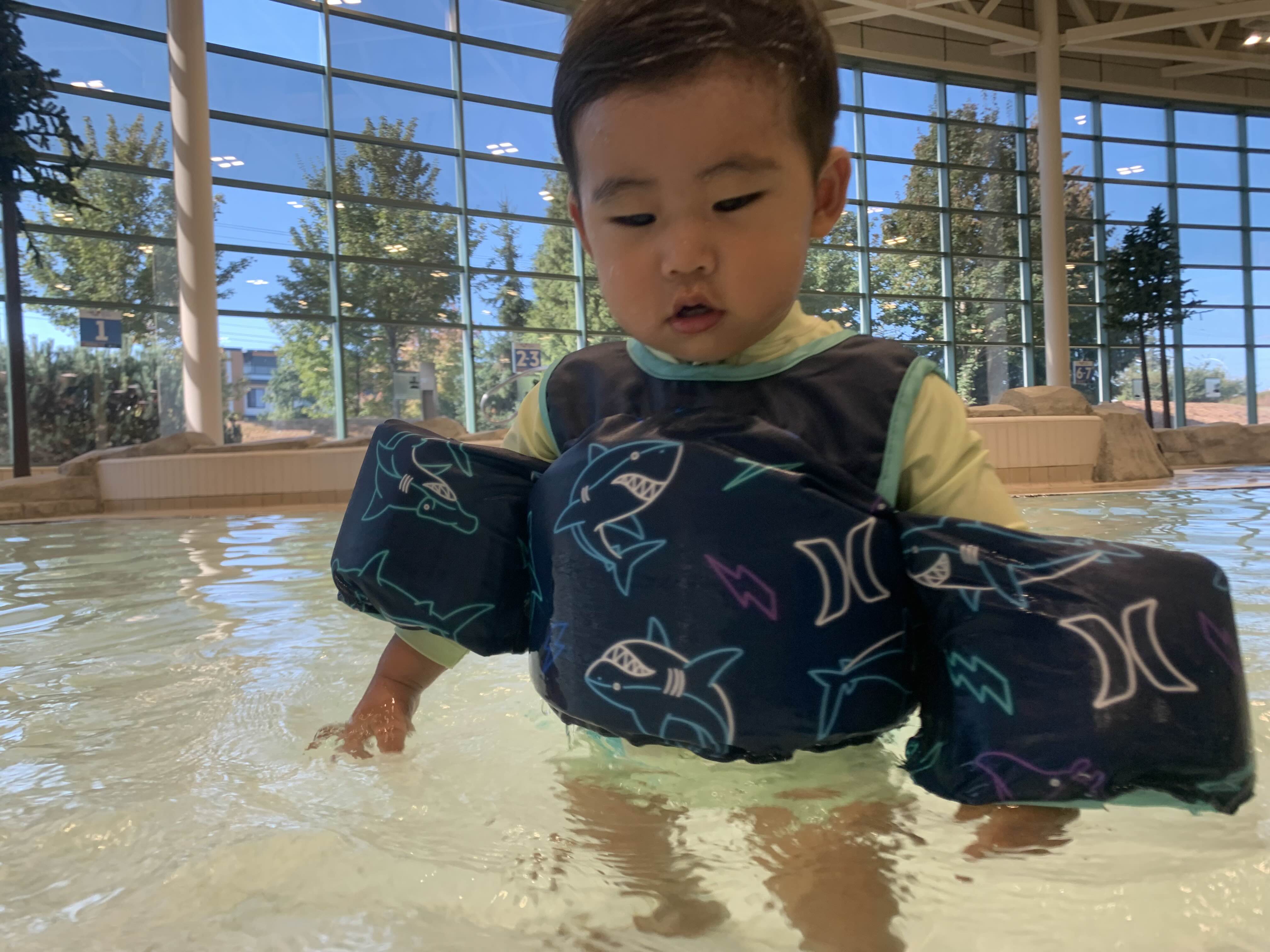 오랜만에 수영온 태오! 아주 신이 났어요!! 혹시 모르니까 구명조끼는 챙겨 입고!!