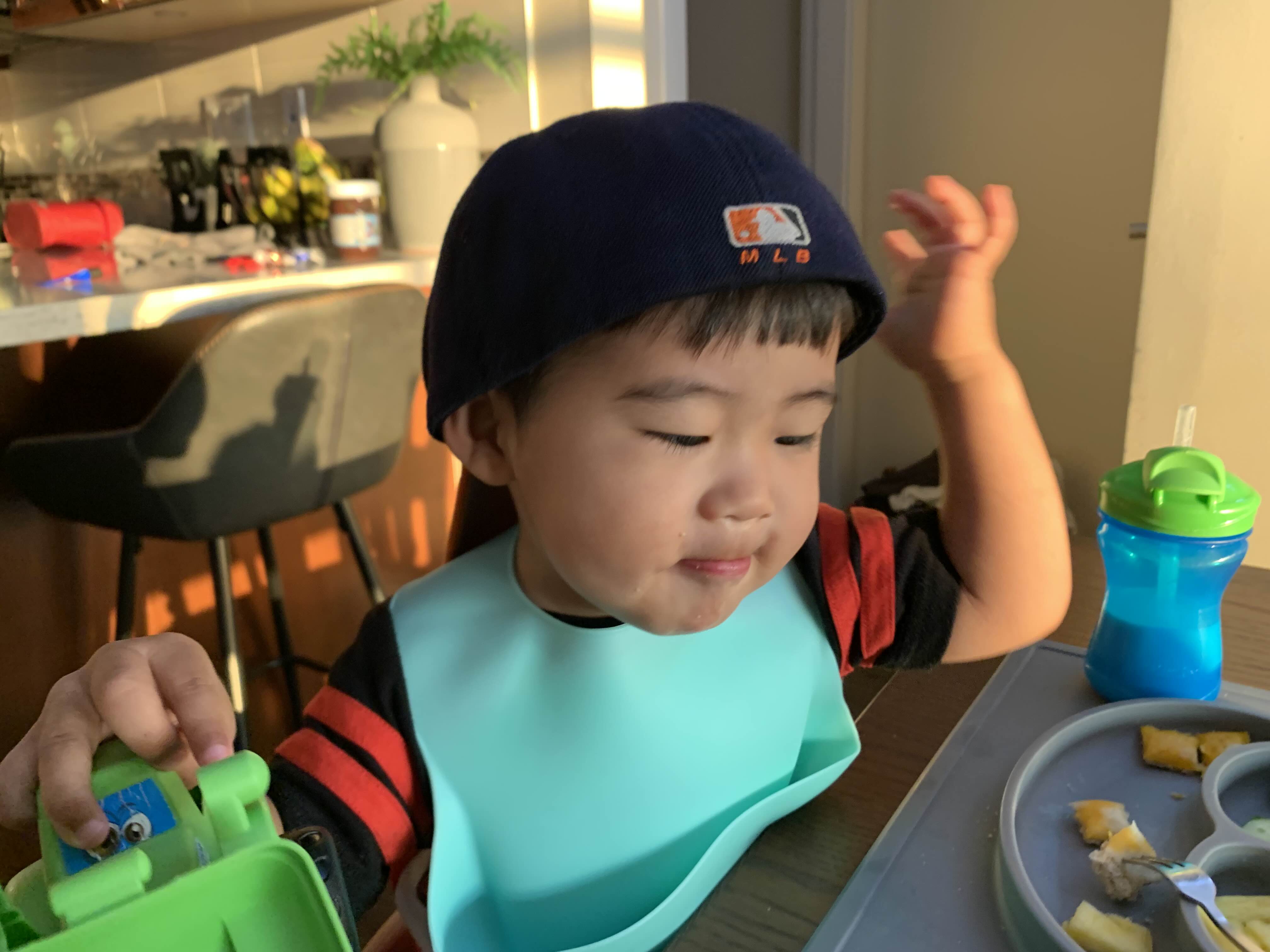 아빠 모자 쓰고 기분이 아주 좋아요! 이런 장꾸가 다 있나 ㅎㅎ 노는 건지 먹는 건지 헷갈릴 때가 많지만 그래도 결국엔 다 먹는 아들이다..