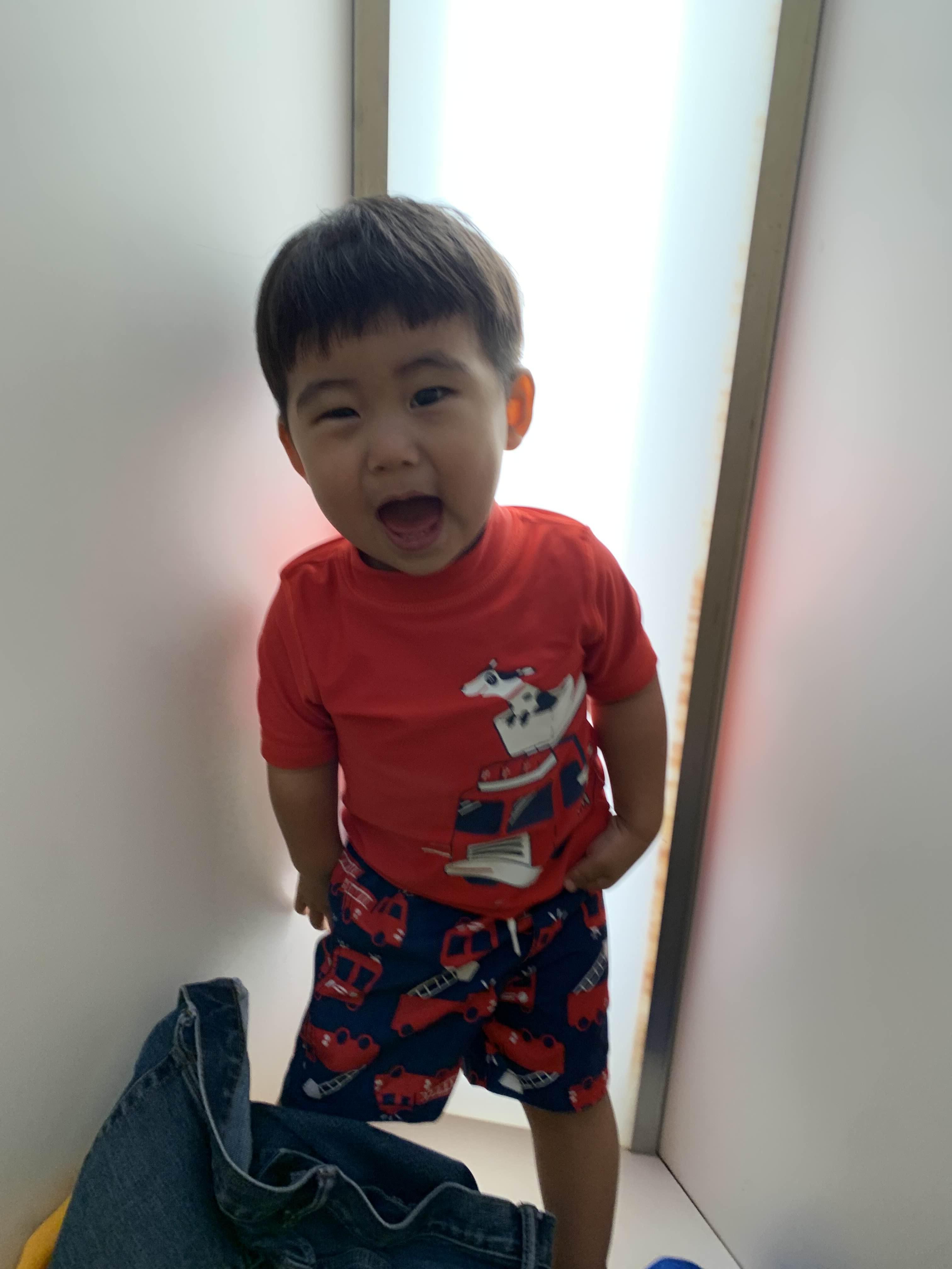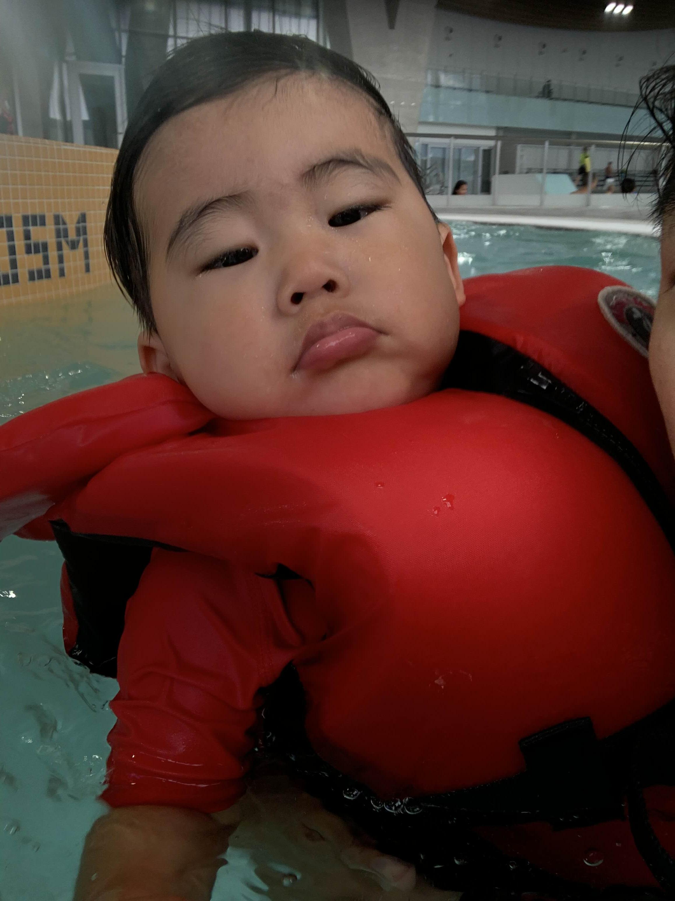 그리고 아빠가 태오 데리고 수영장에 왔어요!! 너무 신이 나서 탈의실에서 소리를 꺄~악 질러 버리신 아드님.. 안에서 그렇게 소리 지르면 안 돼!!