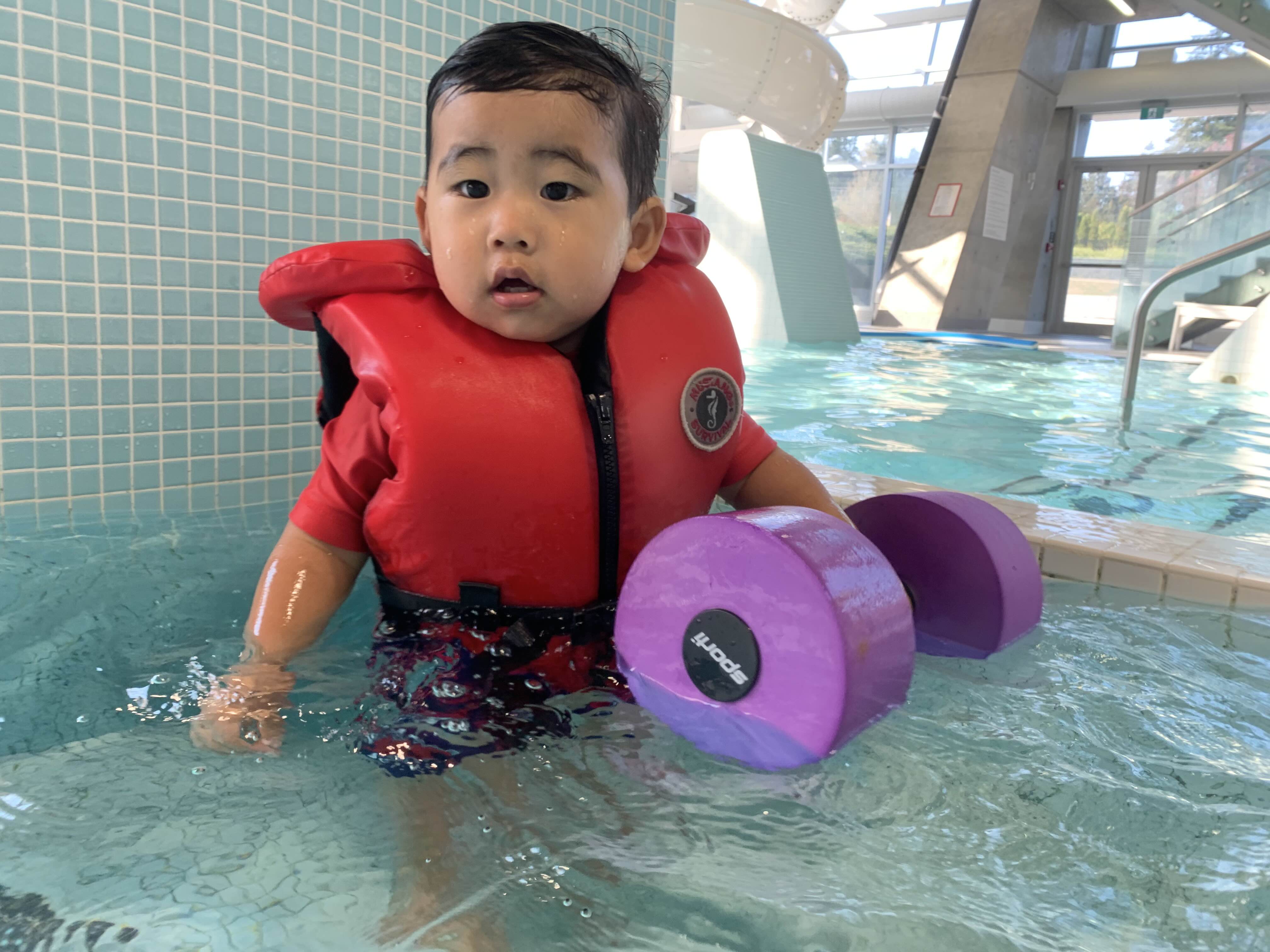 오늘은 사우스 써리에 있는 수영장에 갔어요! 여기는 신기한 것들이 더 많고~ 형아들이 탈 수 있는 보트도 있어서 태오가 너무 신기한 게 많았어요!!