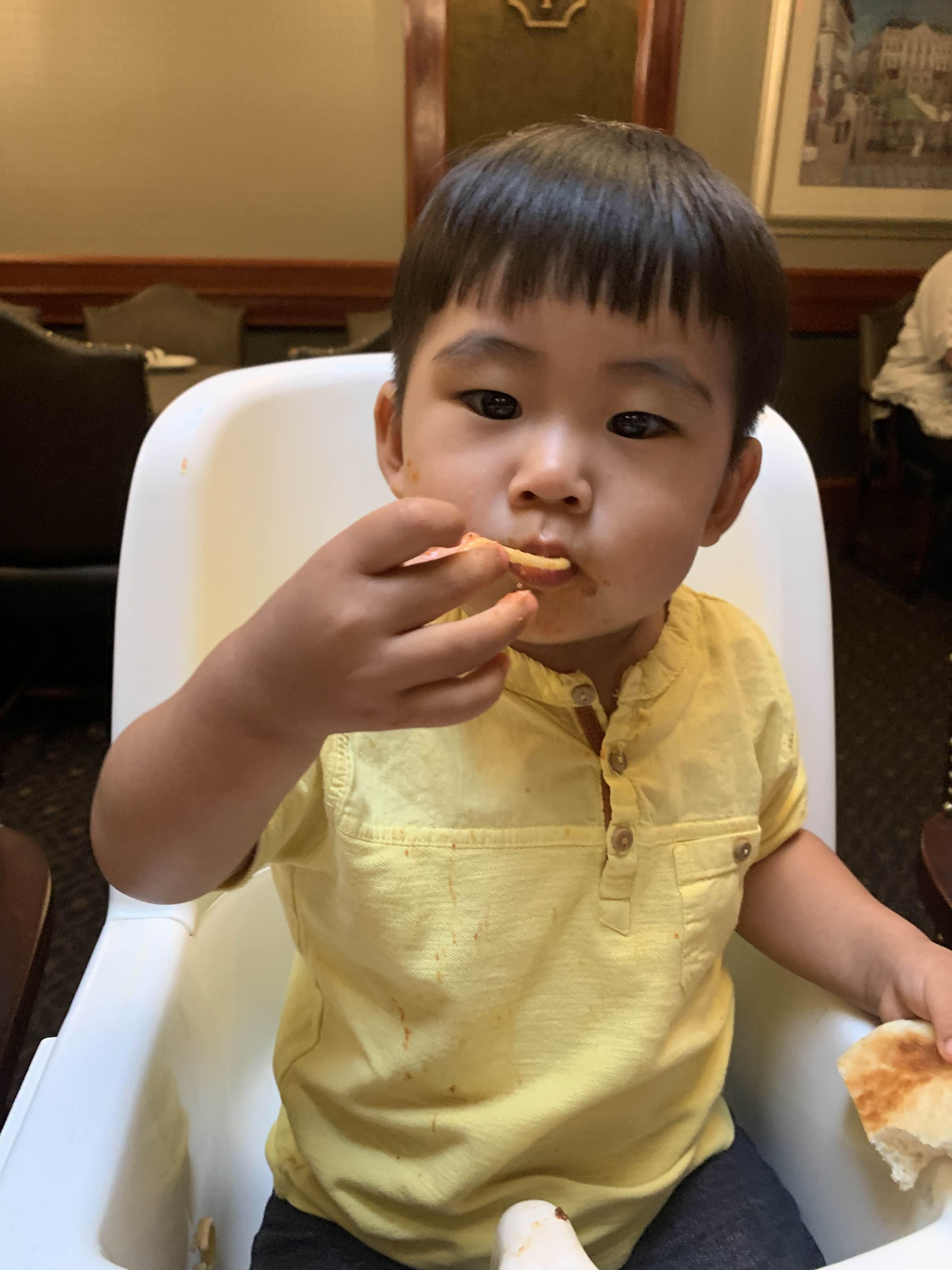 작년엔 와서 아무것도 못 먹고 갔는데, 이번 해에는 형아만큼 스파게티를 야금야금 드셨다고 합니다! 처음에는 스파게티가 뜨거워서 짜증이 났는데.. 이거 먹다 보니 너무 맛있어요 엄마!!