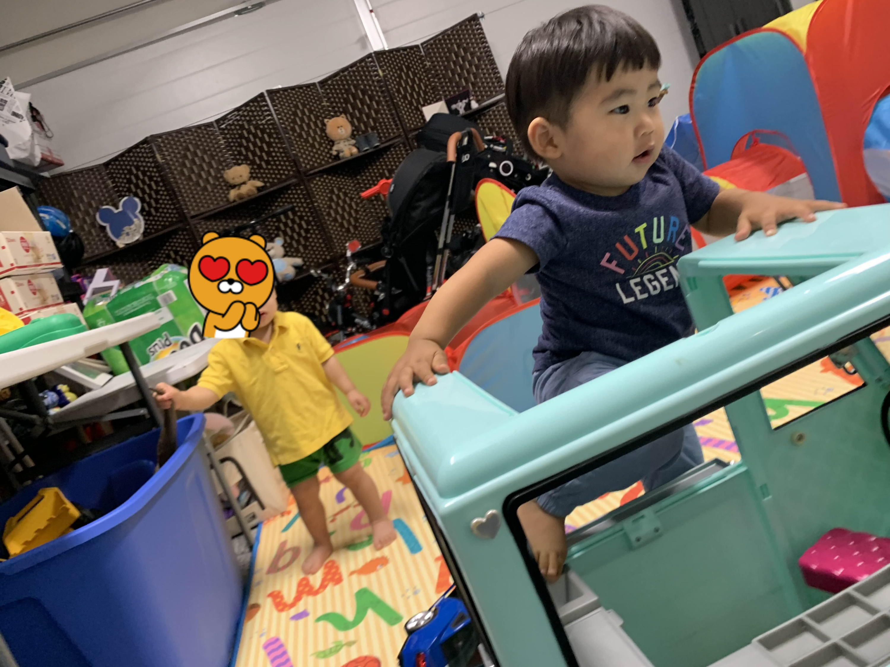 오후에는 리우네 놀러 갔어요!! 리우이 모가 엄청 큰 보트를 집에 설치해 주셔서, 태오도 덕분에 아주 즐겁게 보트 놀이했어요!!!