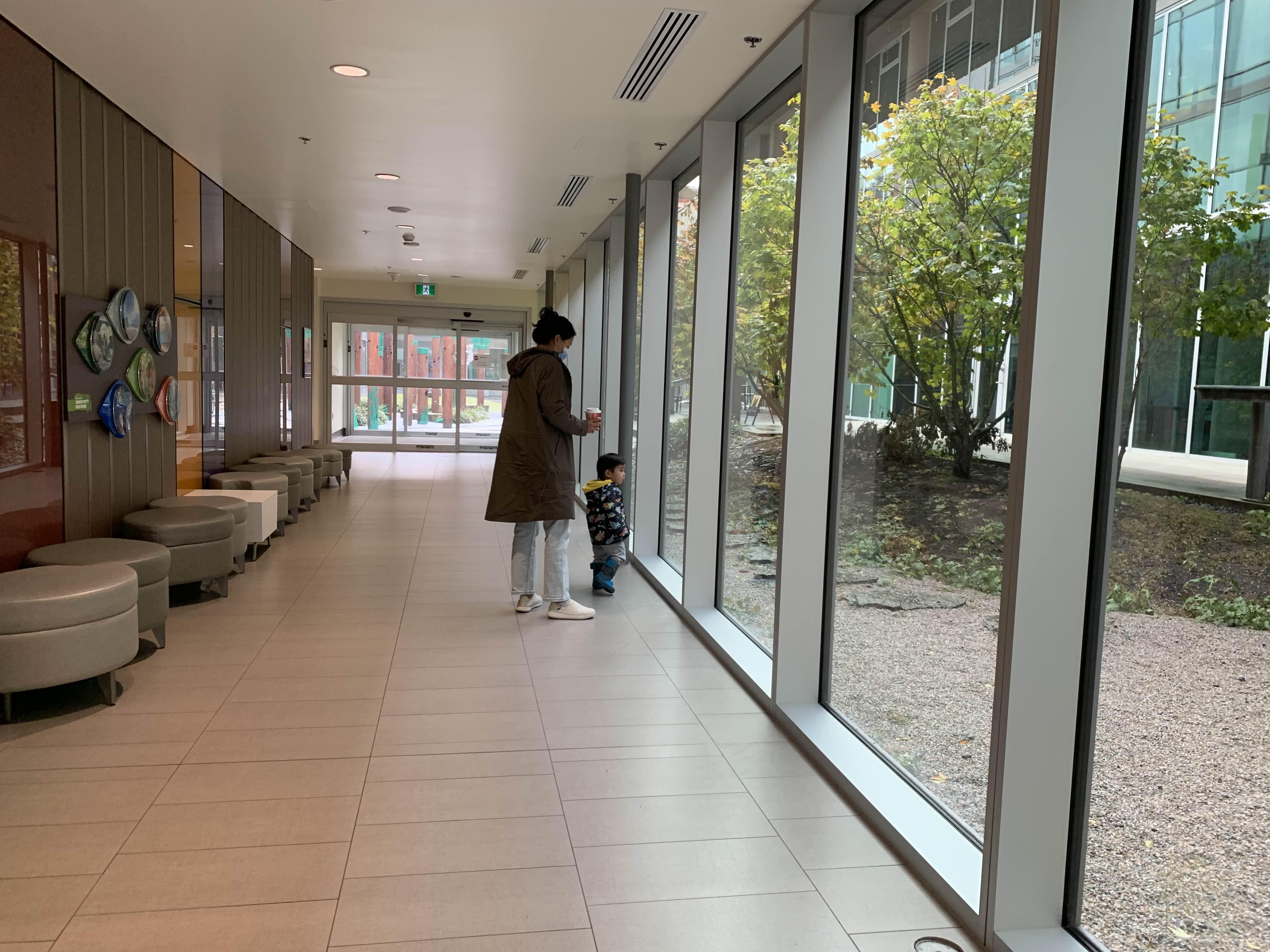 무사히 검사를 마치고, 이모랑 병원 정원 구경.. 6개월 전, 일어서지도 못하던 애가.. 이제는 병원을 누비고 다녀..