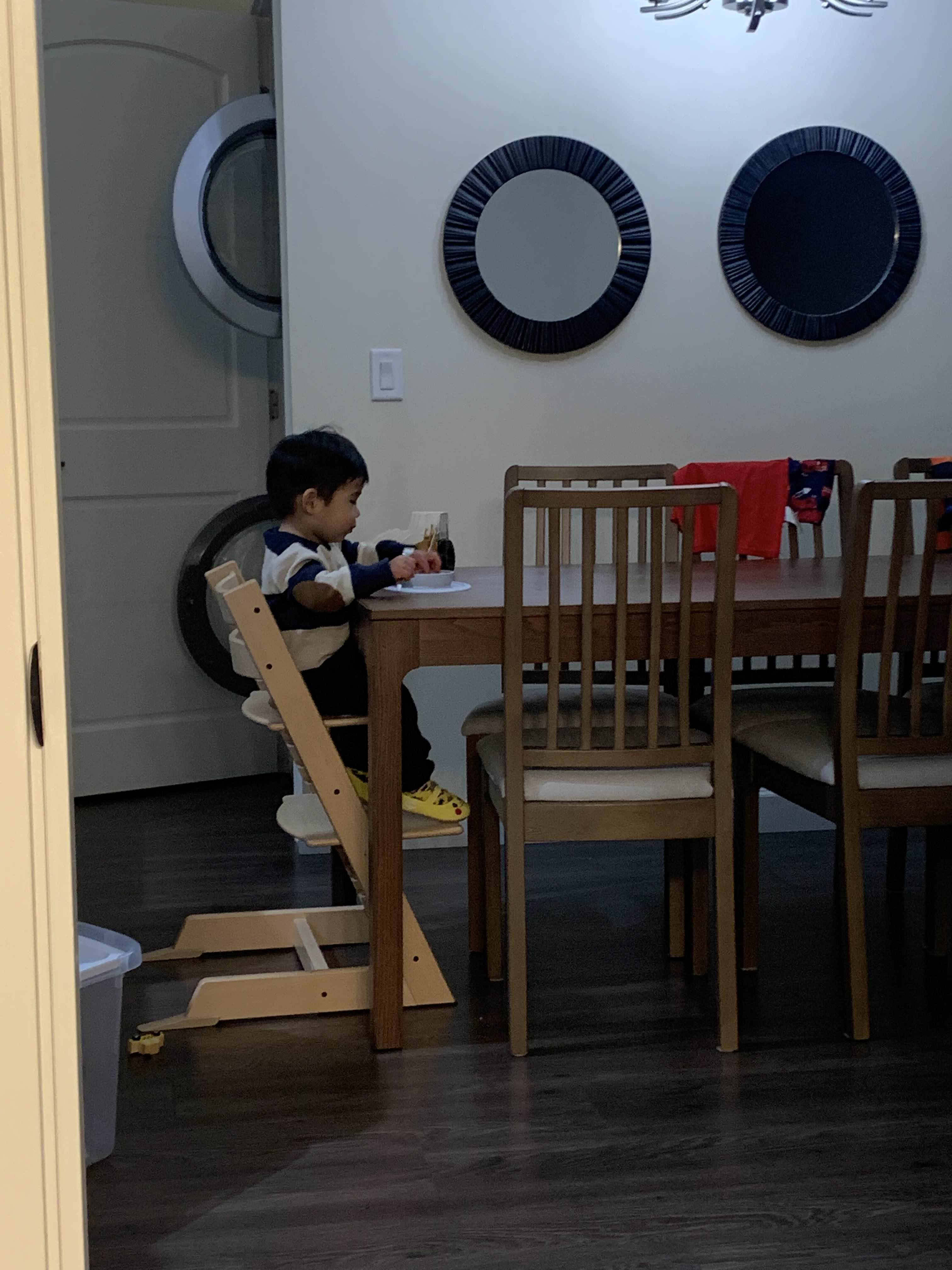 오후 간식 시간, 아빠가 화장실 간 사이에.. 혼자서 식탁의자에 올라가서 딸기 먹는 태오! 어느새 이렇게 컸나 몰라..