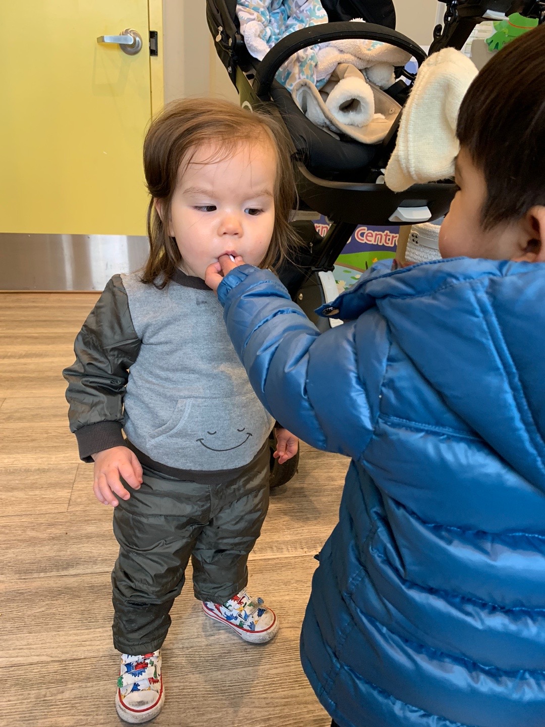 리지 이모 만나서, 그 구하기 힘들다는 어린이 타이레놀이랑 어드빌을 받고, 몰 안에 놀이터에서 놀기! 그런데 여기는 아직 태오가 놀기에는 많이 크네요! 더 크면 놀아야겠어요!!