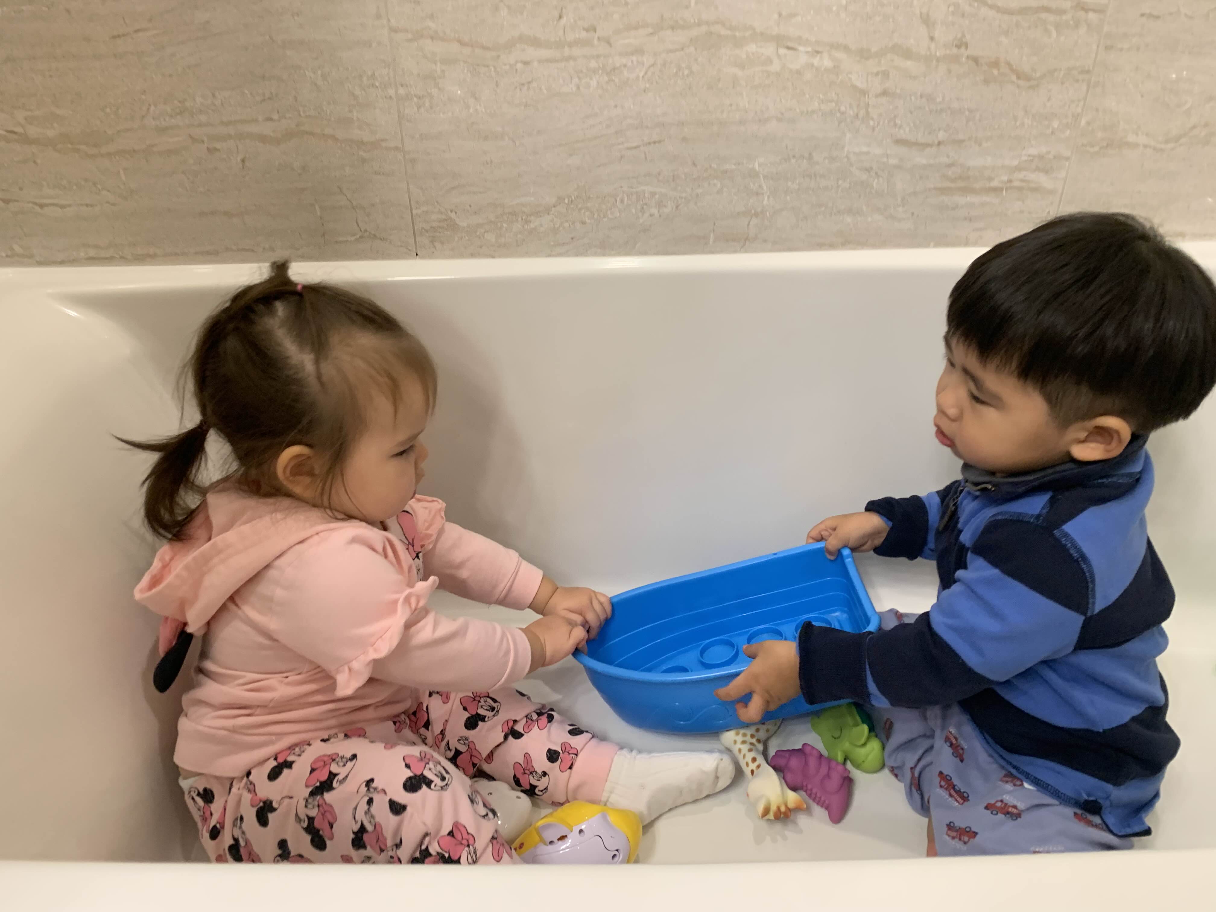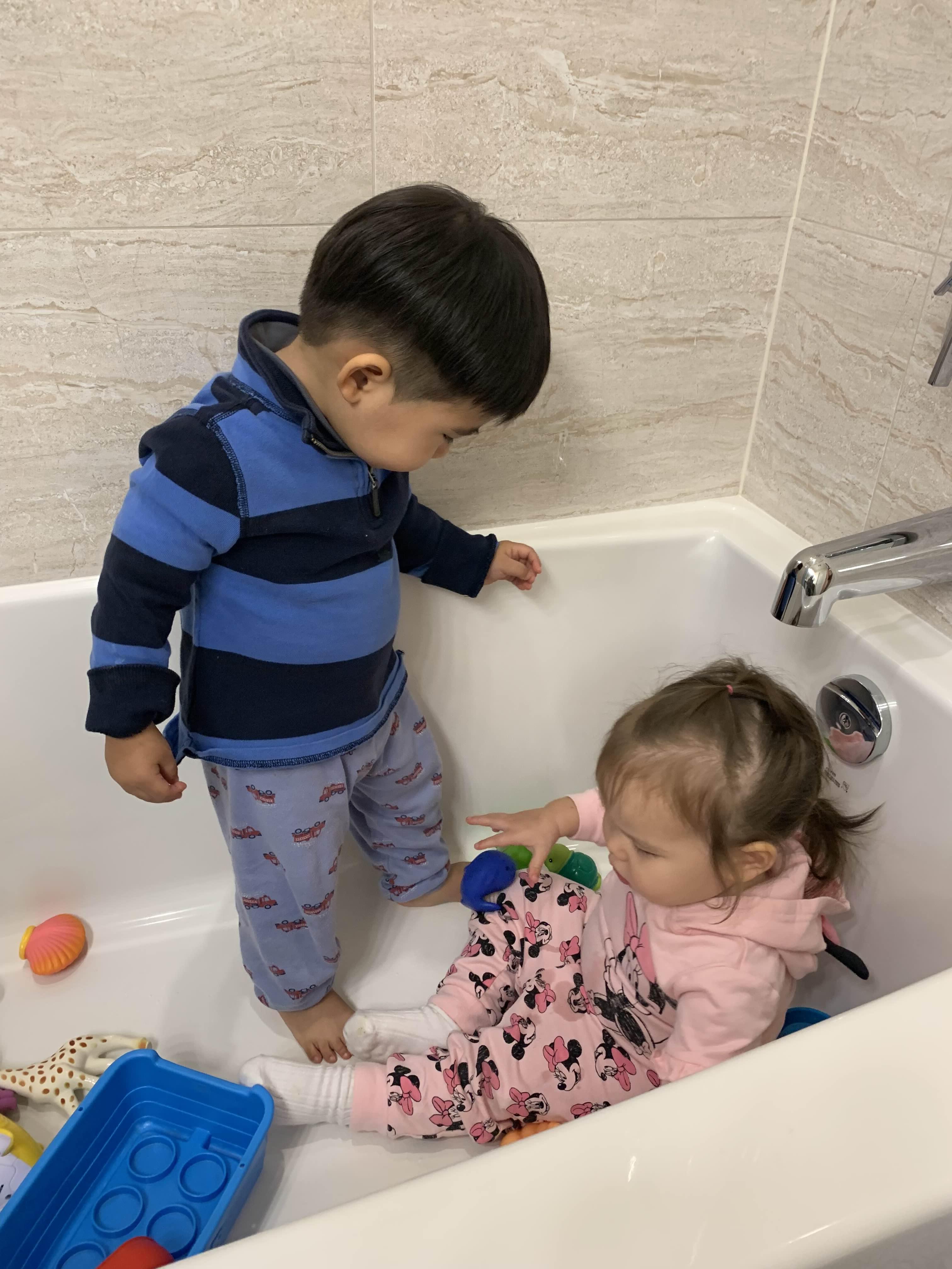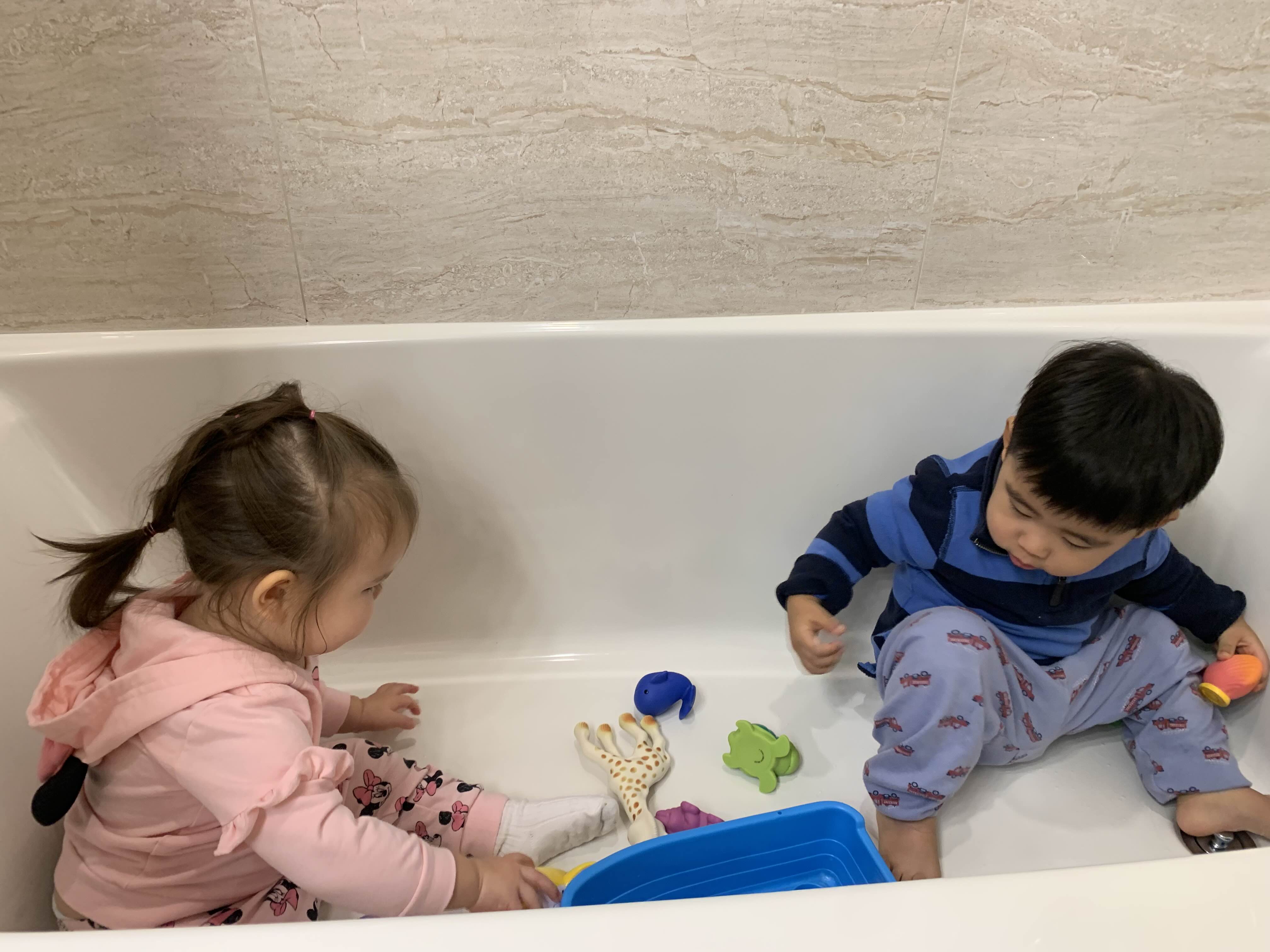 태오가 제일 좋아하는 욕조에서 둘이 앉아서 신나게 놀았어요! 태오가 어린이집 시작하기 전에, 많은 추억을 쌓을 거예요 ㅎㅎ
