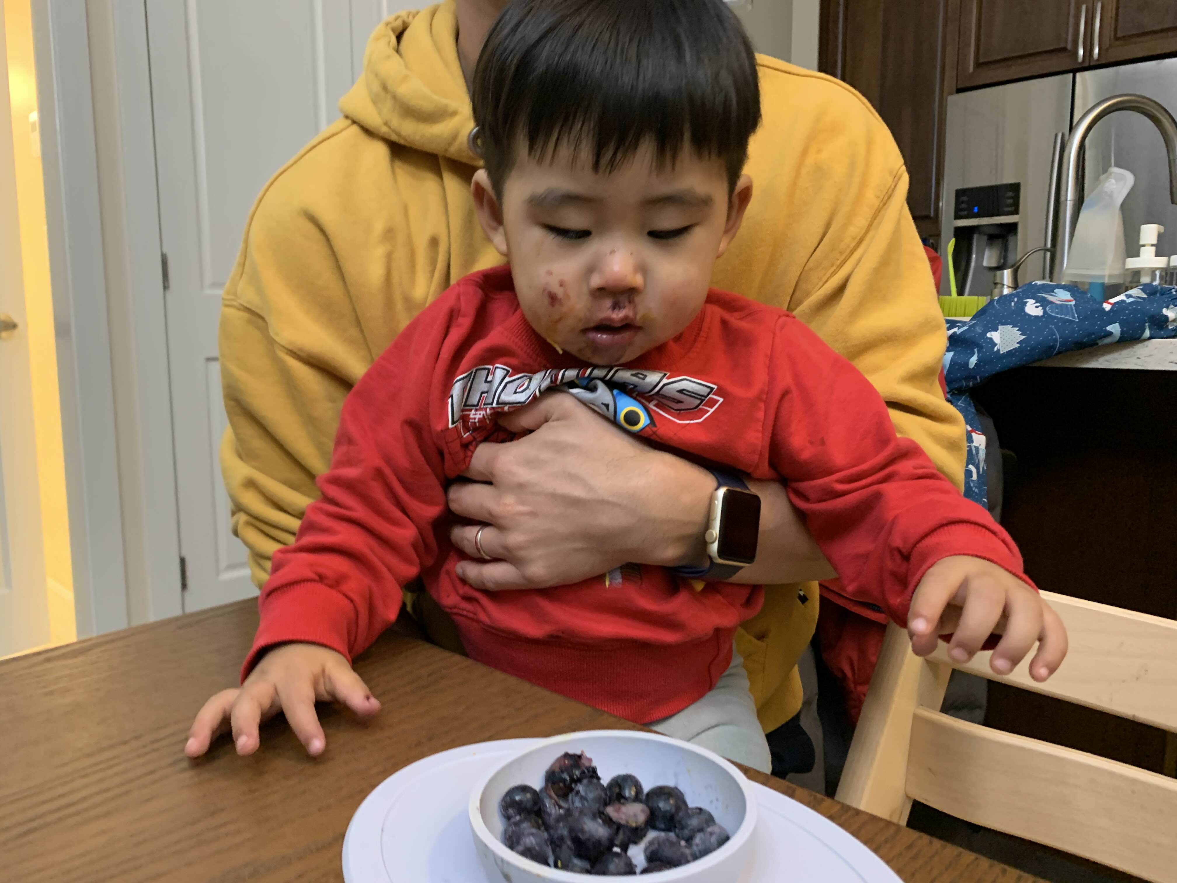 저녁 먹고 블루베리 더 달라고 하셔서.. 줬더니.. 얼굴이.. 이게 뭐야!! ㅋㅋ