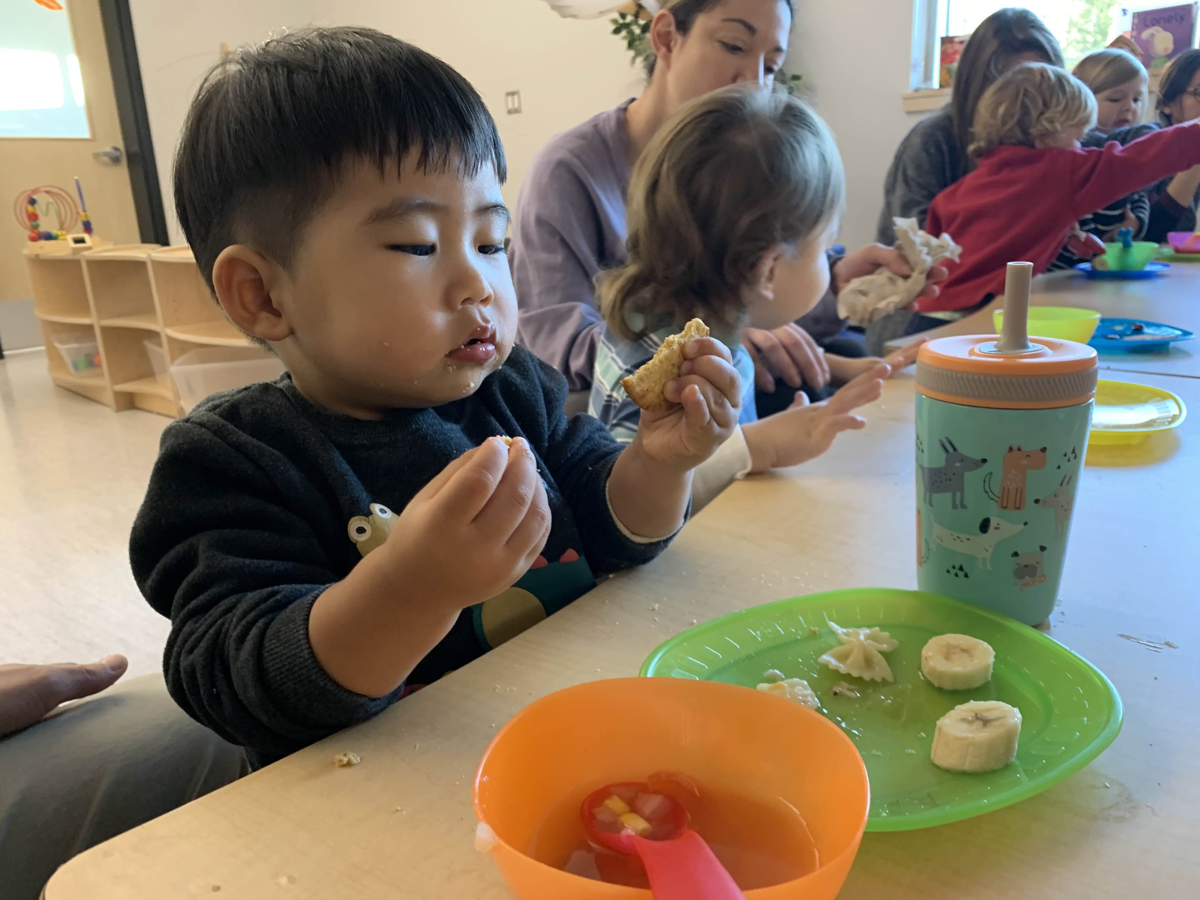 즐거운 간식시간!! 친구들과 다 같이 앉아서 먹어요!